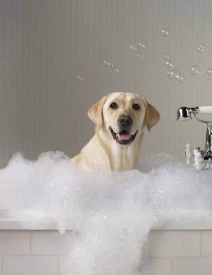 Мытье крупной собаки может сопровождаться некоторыми сложностями, связанными с габаритами любимца. Наиболее подходящим местом для процедуры станет ванна. Если душевая достаточно просторная, можно воспользоваться и ей.