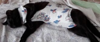 Чтобы кошка не травмировала шов, ей надевают специальную попону. Однако требуется ежедневный уход и обработка.