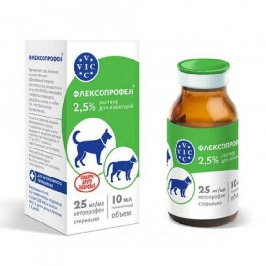 Вводят Флексопрофен под кожу, в вену или мышцу из расчета 2 мг кетопрофена на 1 кг раз в день. Курс – 1-5 дней. Нельзя совмещать с диуретиками, глюкокортикоидами, антикоагулянтами, другими НПВС.